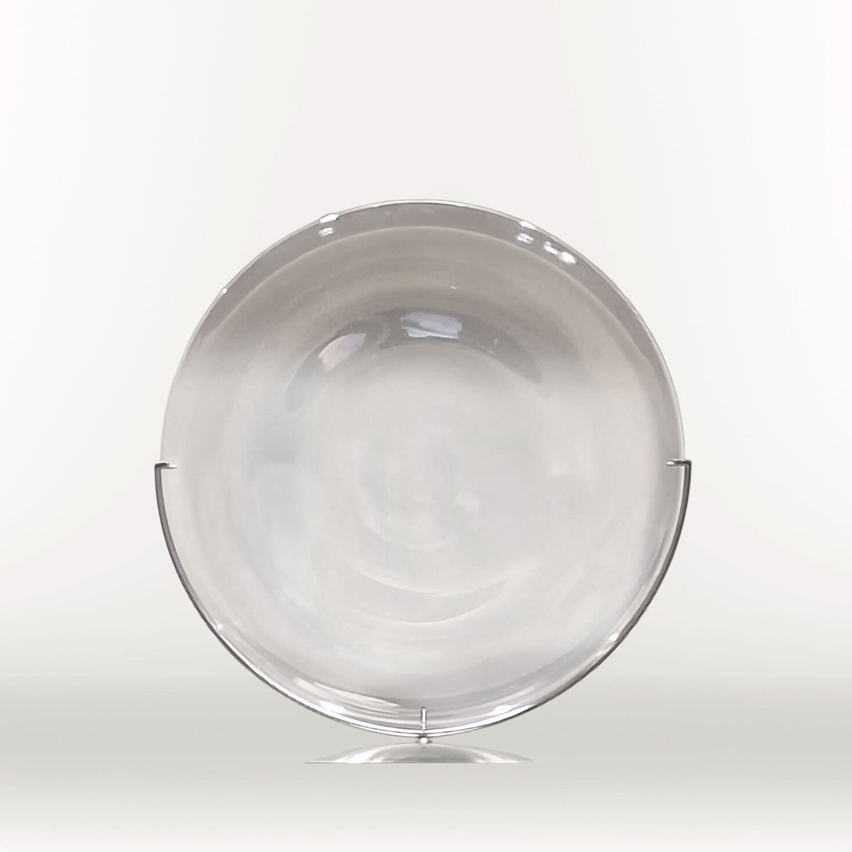 A sculptural Murano glass plate distinguished by iridescent tones and delicate transparency. Designed to interact with light, it brings subtle movement and refinement to curated spaces.