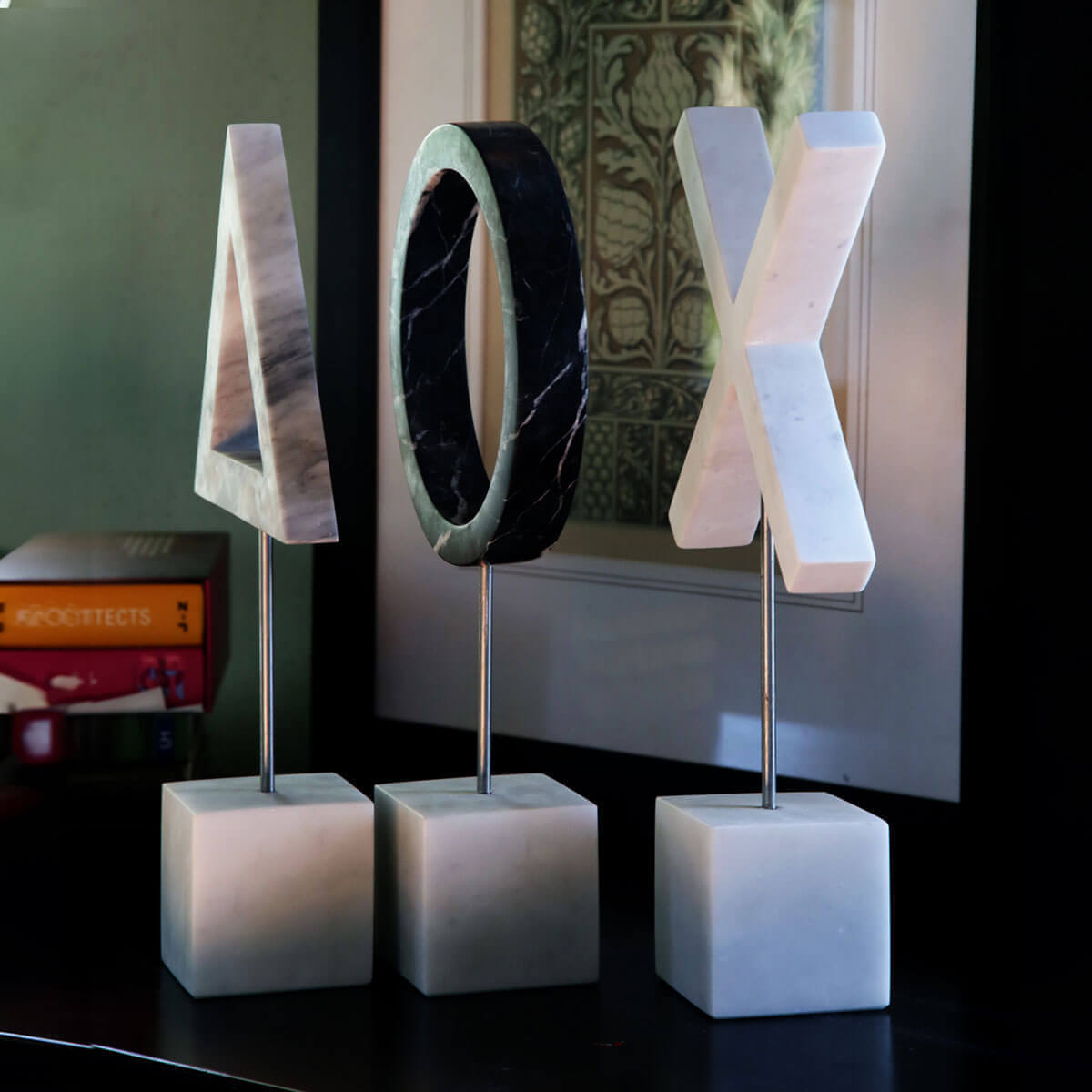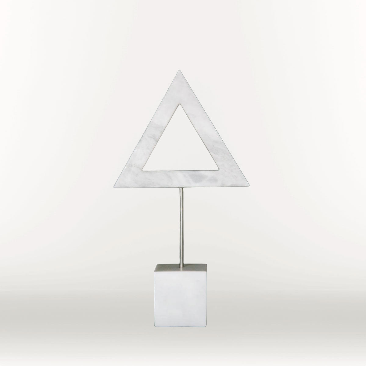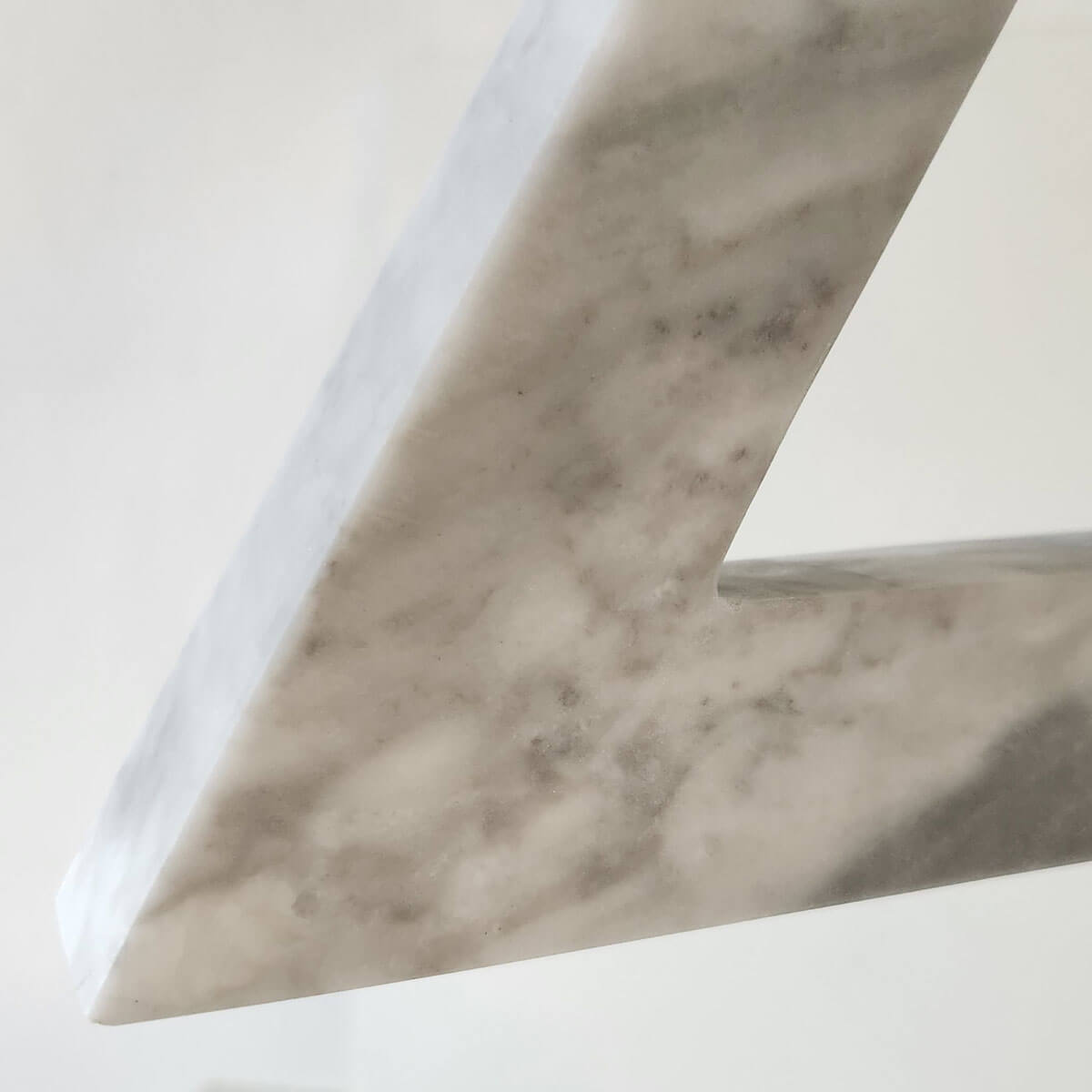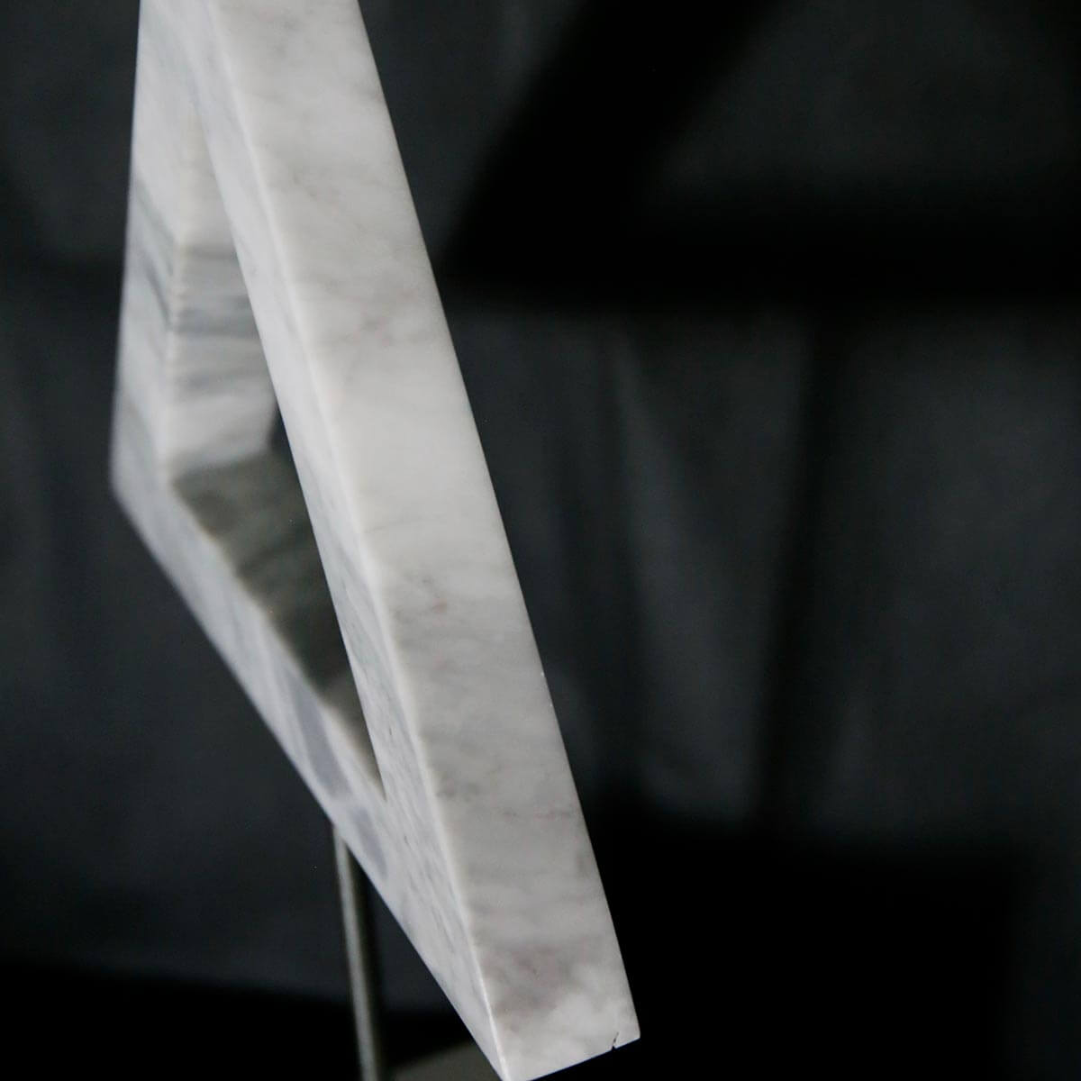 Objects. Handmade Bardiglio marble, stainless steel stem, Carrara marble base