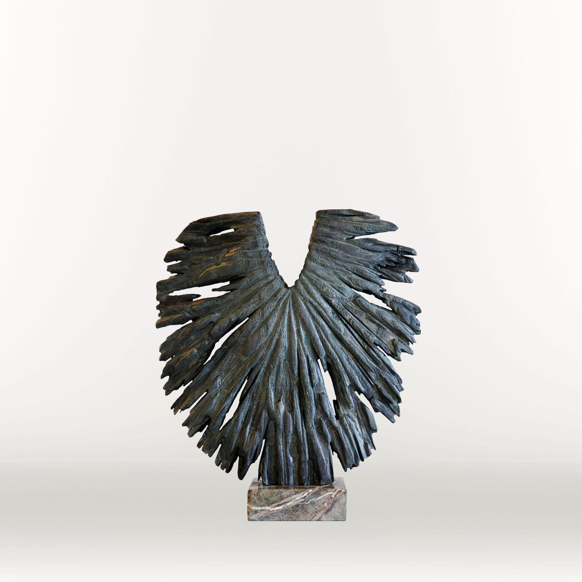 Objects. Handmade chestnut wood, gray marble base